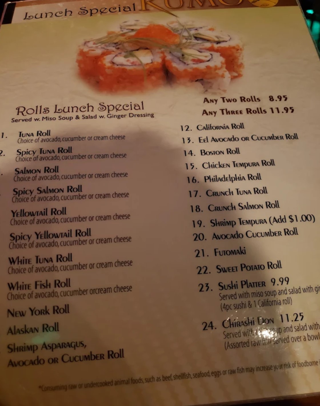 Kumo's extensive menu showcases the restaurant's versatility and expertise. The sushi bar offers an impressive selection of fresh, expertly prepared rolls and sashimi that consistently delights seafood enthusiasts. Their signature soft shell crab appetizer has earned legendary status among regulars. The hibachi grill provides an interactive dining experience where skilled chefs combine culinary artistry with entertaining showmanship, creating memorable moments for families, couples, and large parties alike.